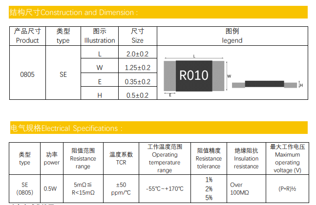 整個(gè)構(gòu)造上包括: 合金層、銅層、錫焊接層、保護(hù)層和表面印刷的阻值標(biāo)記幾部分。