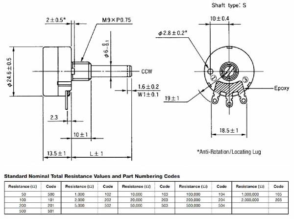 RV24YN20s是常用的電位器。其工作原理是當(dāng)軸向外旋轉(zhuǎn)時(shí),通過(guò)彈片的作用使觸桿與兩個(gè)觸頭接通或斷開(kāi),從而實(shí)現(xiàn)開(kāi)關(guān)的功能。rv24yn20s的接觸性能良好,材料一般采用導(dǎo)電性良好的銀鎢合金。該開(kāi)關(guān)能承受大電流和耐電弧。調(diào)節(jié)電位器rv24yn20s時(shí),通過(guò)軸向旋轉(zhuǎn)拉動(dòng)動(dòng)作來(lái)實(shí)現(xiàn)開(kāi)關(guān)功能。重復(fù)動(dòng)作不會(huì)影響電位器的調(diào)節(jié),因此也有利于延長(zhǎng)電位器的使用壽命。RV24YN20S單圈碳膜旋轉(zhuǎn)電位器廣泛應(yīng)用于:儀器儀表、音響設(shè)備、自動(dòng)化設(shè)備、焊接設(shè)備等