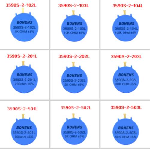 精密多圈繞線電位器 3590S-100R: 3590S-2-101L 精密多圈繞線電位器 33590S-1K: 3590S-2-102L 精密多圈繞線電位器 33590S-10K: 3590S-2-103L 精密多圈繞線電位器 33590S-100K: 3590S-2-104L 精密多圈繞線電位器 33590S-200R: 3590S-2-201L 精密多圈繞線電位器 33590S-2K: 3590S-2-202L