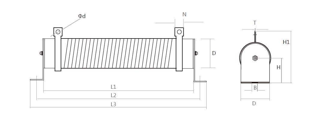 RX20線繞電阻器,表面絕緣耐高溫涂層,功率大,抗過載能力強,耐高壓(指電極與安裝支架之間的電壓)
