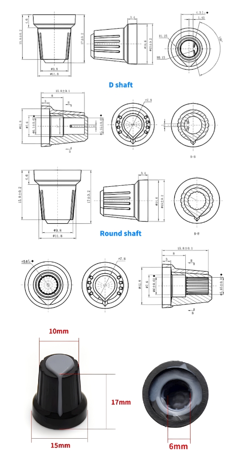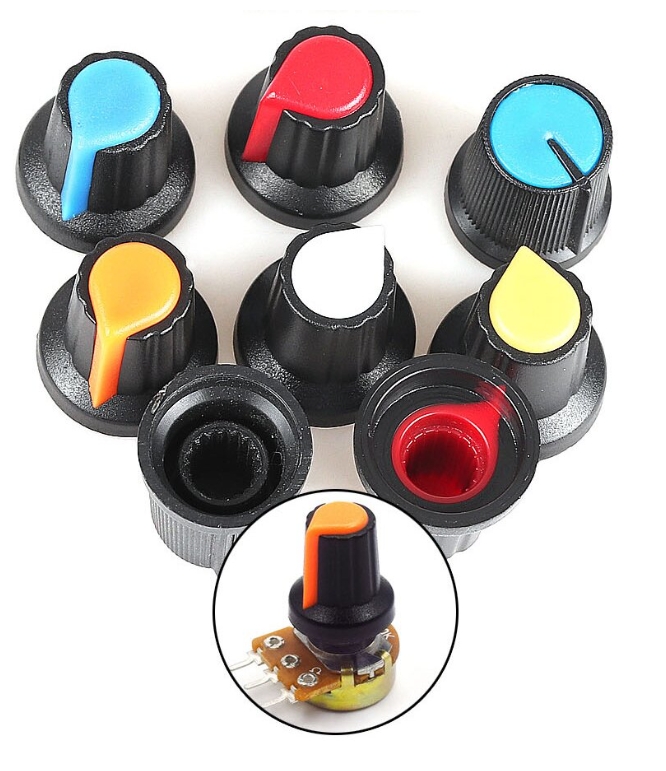 帶有防滑條紋,用于電位器,編碼器,波段開關(guān)等,旋鈕帽孔徑有6mm通過手動調(diào)節(jié)轉(zhuǎn)軸和滑柄,改變動觸點在電阻體上的位置,則改變了動觸點與任一個固定端之間的電阻值從而改變了電壓與電流的大小。此開關(guān)帽有防滑作用,安裝使用起來的手感會更加舒適