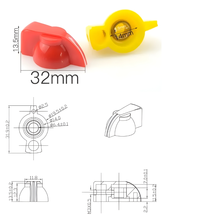 彩色塑料雞頭旋鈕采用ABS塑料制成,表面無毛刺,顏色正,不褪色。自帶固定螺絲,安裝后不易松動(dòng)